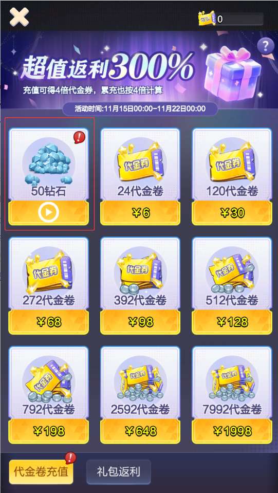 1:超值返利页面的每日观看广告可以免费领取300钻石,每20分钟可以观看一次,这个一定每天都要看完。