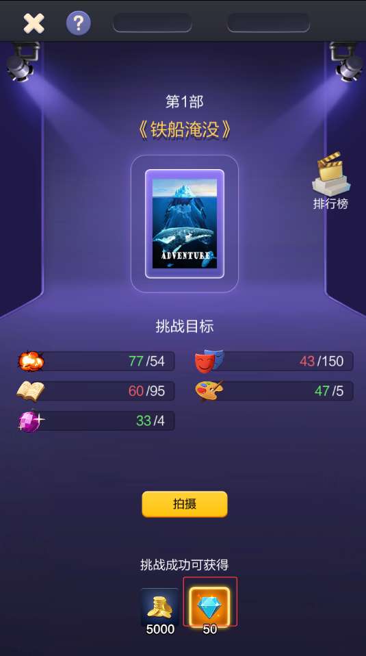 3:影途挑战赛免费钻石获取,拍摄挑战剧本成功可以获得若干钻石,这个可以通过提升自身艺人属性实力来闯关领取