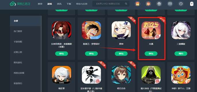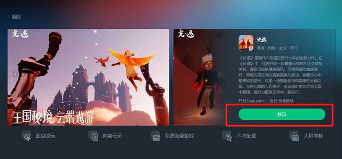 2、搜索找到光遇,点击秒完就可以直接打开光遇网页版。