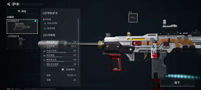 护木选择UZI导轨护目。对比UZI性能护目,导轨护目在不改变原有配件槽位的情况下,能够增加后坐力控制以及操控速度。