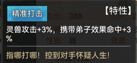 选择带有[精准打击]词条的灵兽增加自身效果命中