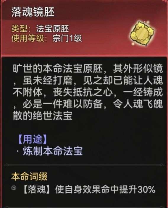 只推荐增加效果命中的[落魂镜胚]