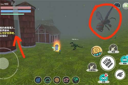 然后点击上面图片的下方图案第四个手势图标,点击这个按钮将大佬抱起来,之后我们普攻蜂王,让蜂王的仇恨到你身上,然后带着大佬跑,让大佬的召唤物打他,因为普通的支援是不给经验的。