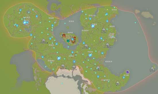 我们在地图上标记了61个星星图标,代表风神瞳的位置(风龙遗迹神像的图标盖住了一个)