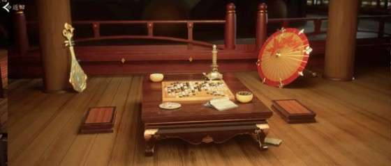 酒坊内部如下图,可以找到樱桃毕罗(图中甜品)和李白剑谱。点击公孙离的伞玩拼图游戏后可进官船。探索官船部分后面会讲。官船探索完生成海报,可抽奖一次,想继续抽奖我们要重来。