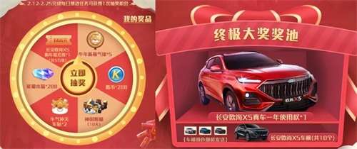 在2月26日0:00点前,车友们完成任务点亮完整终极奖券,就可以参与抽取长安欧尚X5真车一年使用权大奖及车模好礼,开启一年好运!