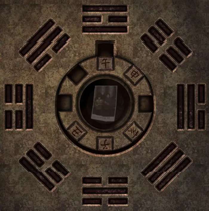 进入卧室,按照⑦柴房宫灯每个面的提示【子☵丑☶午☲申☷亥☰】,将莫琪家⑧架子墙上的机关与八卦图案对应,获得旧合照。