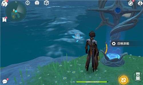 靠近浪船锚点,点击【召唤浪船】的功能按钮。(PS:首次找到浪船锚点会冒着红光,需要先解锁了变成蓝光后再用。)