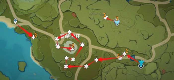 5)在如图踏鞴砂点位,一共9只晶蝶,按照图中路线即可