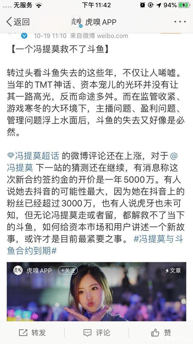 还有一点,直播平台的粉丝更侧重的是主播方,主播签约新平台,粉丝降低这是必然,但是降并不会降低多少!对于他们来说,就是换一个网址的事情没有多大的麻烦,这就是一个有低损失率的粉丝迁移罢了!而冯提莫年龄28了,算得上大龄女主播了!若还像以前那般,卖萌唱歌维持不了几年,转型是他迫切做的事!