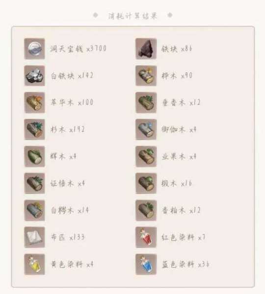 材料一览