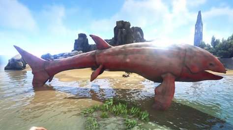 它头部有一层轻型硬甲,是防御蛇颈龙等掠食者的一种盾牌,又是生存于恶劣环境中的生物特征。它那强大的尾巴不但可以推动自己穿过广阔的大海,而且还可以摧毁任何想闯入它的领地的物体。如此巨大的生物,每一块肉都足够供整个部落食用,玩家们经常用刮取肉块的方式不断获得这种资源,不会对它的生命造成威胁。利兹鱼是《方舟:生存进化》里最有挑战性、最有资源价值的水生生物之一,它那巨大的身躯和强大的力量,使得每一个碰到它的幸存者都会不由自主地心跳加快。