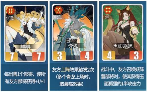 6星牛魔王:召唤随机2个妖族牌。不包含自身共计17张妖族牌,其中白板卡有9张,毒药1张,不屈3张,守卫1张,带遗计召唤物的牌4张,一半的概率出白板,收益一般,6星性价比低。