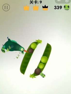 2、然后豌豆荚会转动,豆子的位置也会跟着变动,掌握好时机,将连在一起的青豆啄掉