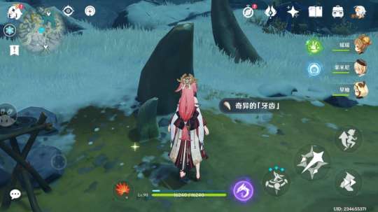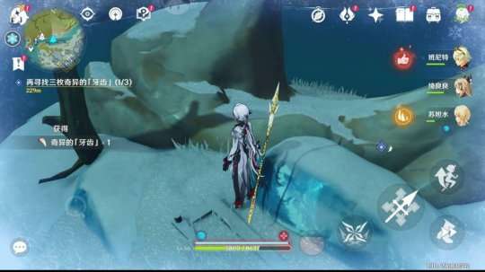 任务里龙牙位置指引(上面那个红圈是三个中的其中一个牙齿,下面攻略按照从上往下顺序讲)