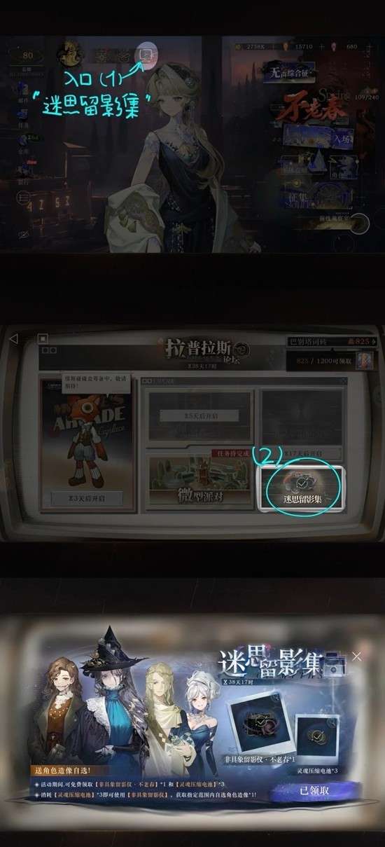 活动「迷思留影集」和198礼包「灵魂摹本」里的相机都是附赠【灵魂压缩电池】3个的