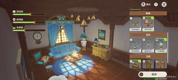 1、点击【布置】选择【相聚畅语】【无忧山林】【监牢结实】【冷清丽景】【柔光矩柜】。