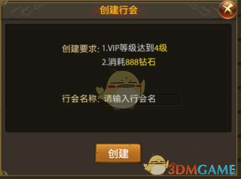 1、创建行会需要VIP等级达到4级和消耗888钻石