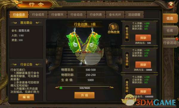 3、行会成员通过捐献可获得行会贡献,行会也可增加一定的行会资金