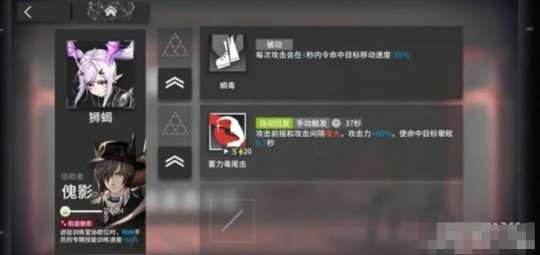 《明日方舟》中,傀影是一位代号为“黑夜中的幽灵”、“幕布后的幻影”的特种干员。她具有一定的战斗能力,并能提供一些辅助支援。此外,傀影还能使用幻术,让敌人措手不及。不过,傀影的能力主要针对远程敌人,对于近战敌人的战斗能力相对较弱。因此,如果玩家需要远程攻击和控制能力,可以考虑抽取傀影这位六星特种干员。