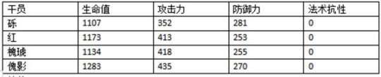 可以看出,基础属性面板方面砾碾压其他干员,毕竟她是六星干员。然而,砾在同类型中依然是最肉的,满信赖后她甚至比傀影还要血厚。这说明为了博士,砾愿意承受更多的伤害。顺便说一句,傀影的攻击力最高可达到670(满潜能,满信赖),总体来说它更注重输出。如果我们考虑到傀影的虚影效果,那么所有数据都要乘以二。因此,傀影已经远远超越了其他同类型的干员。但是,它似乎仍然不够强大。