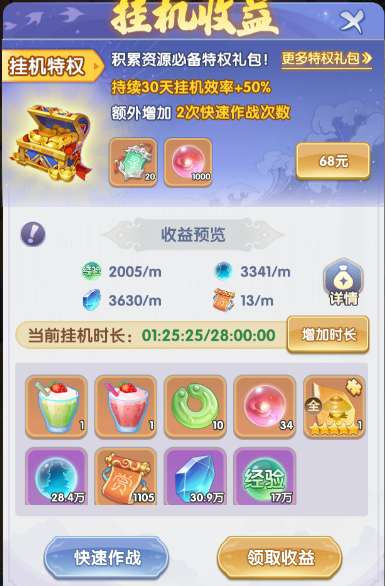 挂机收益,累积时长越多,进阶丹数量越高,有条件的,可以解锁【挂机特权】,除了有1000进阶丹到手,还有额外的收益。