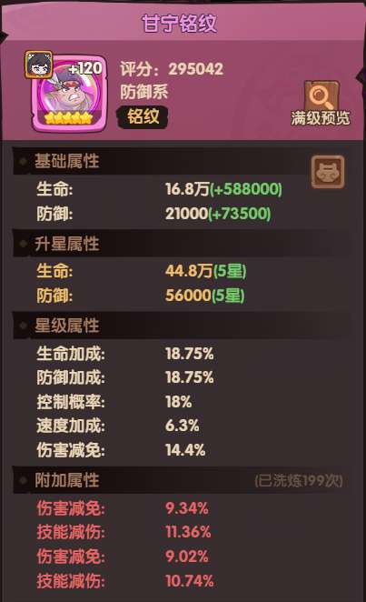 星级属性:速度>伤害减免>生命>防御>控制概率。