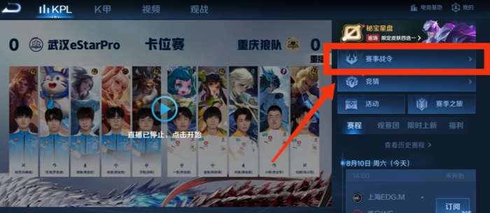 游戏大厅-赛事-赛事战令-活动-观赛得回城
