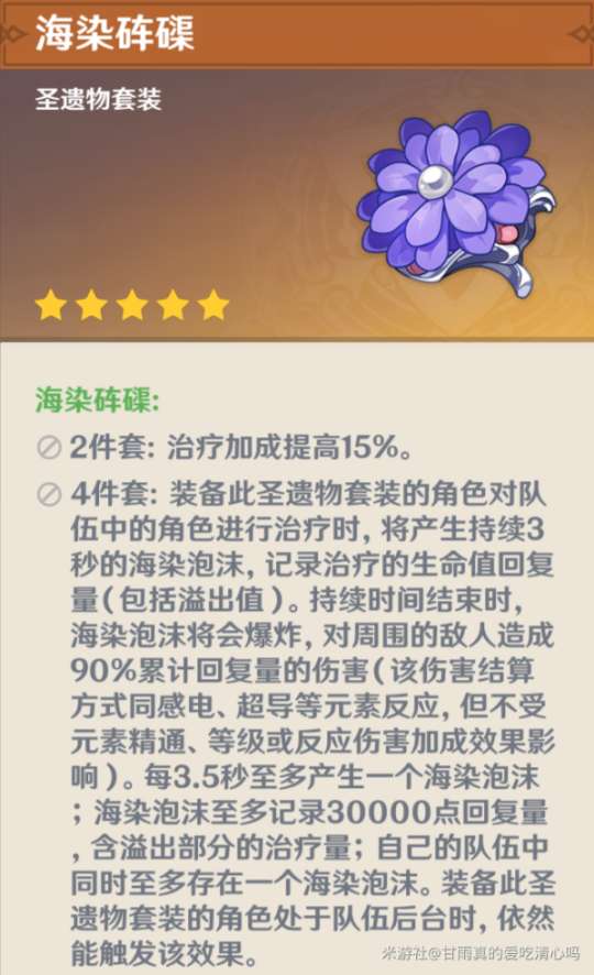 可选,海染阵磲可以在多莉释放元素爆发后触发海染四件套效果,提供额外的伤害。