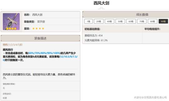 可选,西风大剑可以在多莉暴击的时候提供额外的元素能量,缺点是需要足够的暴击率。