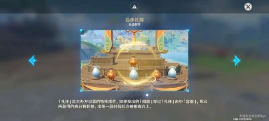 穿过「礼环」投出的「掷箭」命中「容壶」后积分会翻倍,「礼环」有时间限制。