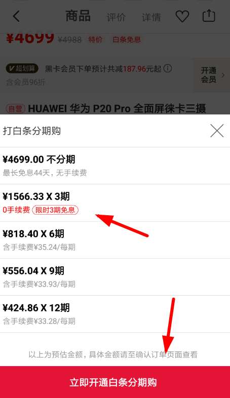 2、而在成功打开“打白条分期购”界面后,我们点击下方的“立即开通白条分期购”的按钮,就可以尝试开通网易白条。