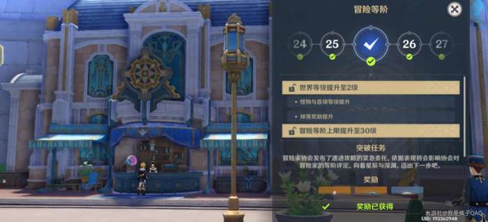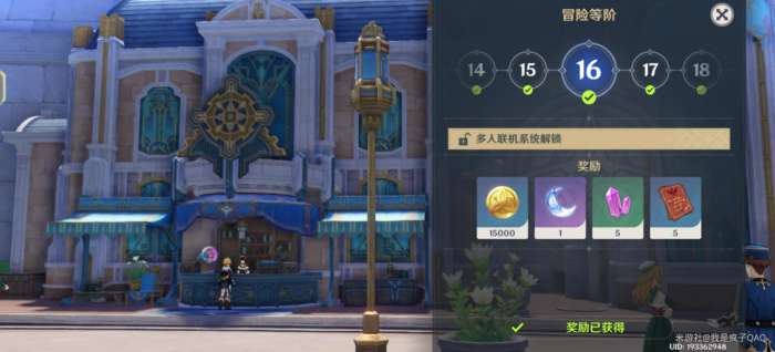 冒险等级28级解锁尘歌壶、钓鱼系统
