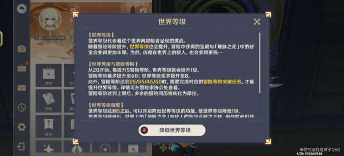 世界等级达到五级之后,每天可以调整一次世界等级,可以选择降低一次或者恢复原等级