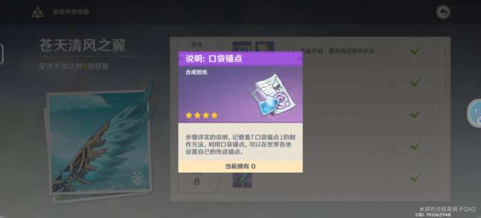 蒙德声望6级解锁口袋锚点,世界里只能放置一个,如果再次放置则会替换上个口袋锚点,每次可以存在7天