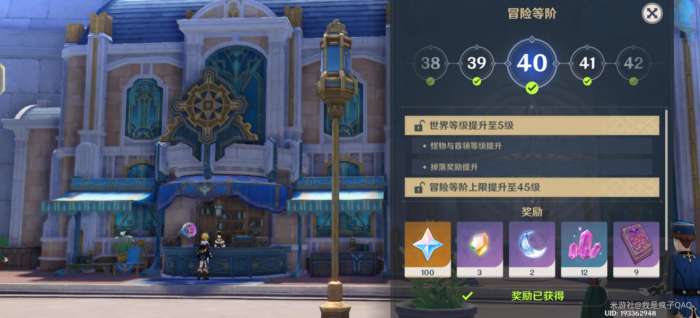 冒险等级45级突破后解锁天赋素材、圣遗物副本最高等级、世界等级6