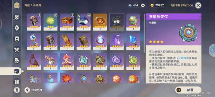 参量质变仪可以用不需要的150个材料进行转换,放置材料后用元素进行充能,充能完毕后物品会自动回收,冷却时间为7天
