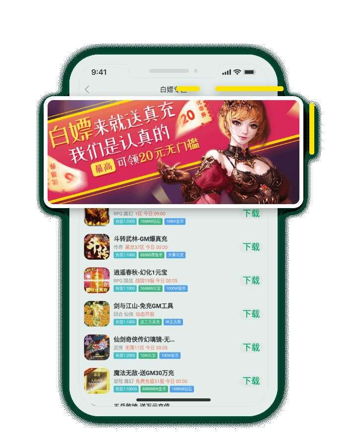 0.01折游戏是一款拥有丰富折扣游戏的平台,海量游戏0.01折,全场自动打折,每天都能在线嗨玩。游戏盒内含8000多款热门手游,涵盖传奇游戏、三国游戏、修仙游戏、新盗墓笔记、二次元卡牌等,多种类型多种风格满足玩家的游玩需求。还为玩家准备多重福利,无门槛大额代金券免费送,变态游戏还送满级vip、gm特权,0元就能爽玩。