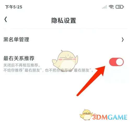 5、关闭【最右关系推荐】功能。