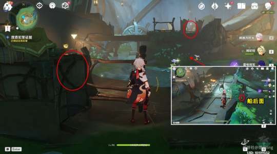 调查三处位置,角色旁边箱子上一处,船上餐桌上和船后面箱子上两处