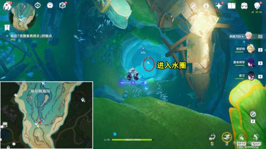 前往艾尔顿海沟,到达下图位置垂直向下游,进入水圈前进