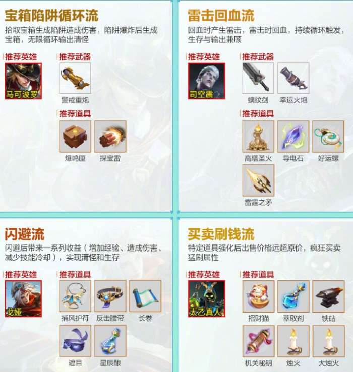 2、推荐道具:招财猫、萃取剂、机关秘钥、烛火、铁砧、大烛火