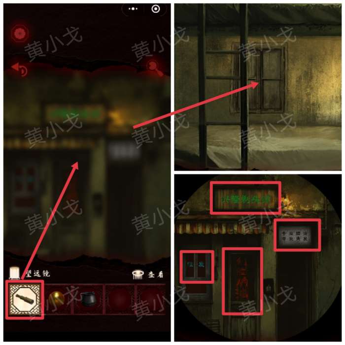 3.点击窗户,使用【望远镜】,获得线索(有小高能)