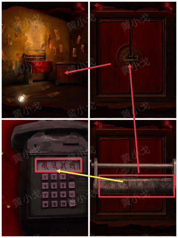 19.点击柜子上的密码锁,根据电话机上的符号,调整密码锁