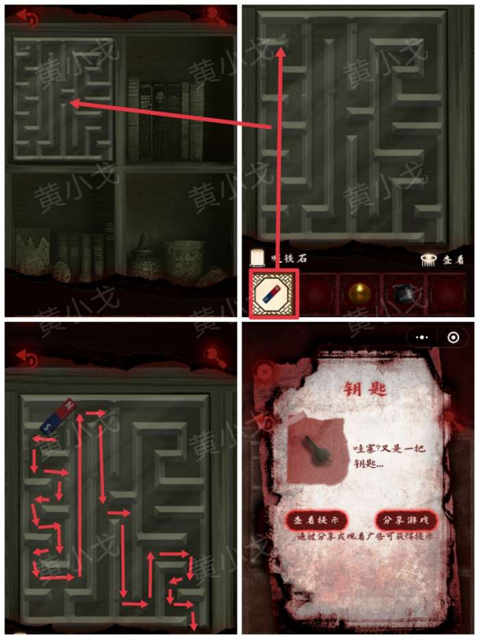 9.点击柜子上的迷宫机关,使用【吸铁石】,走迷宫,把【钥匙】吸出来