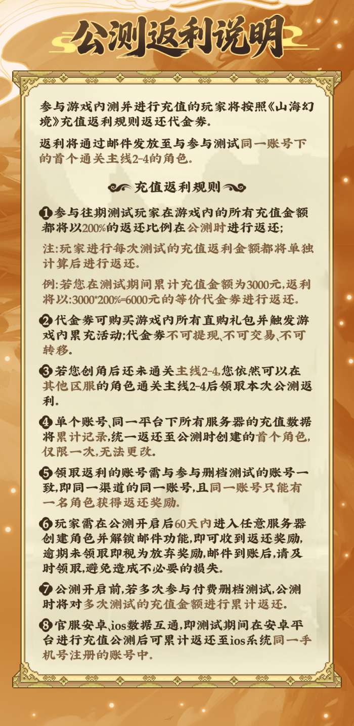 *返利将通过邮件发放至与参与测试同一账号下的首个通关主线2-4的公测角色。