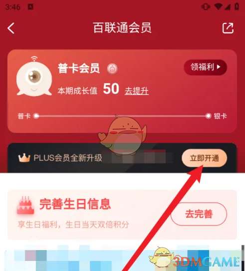 2、在百联通会员界面,点击‘立即开通’