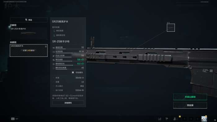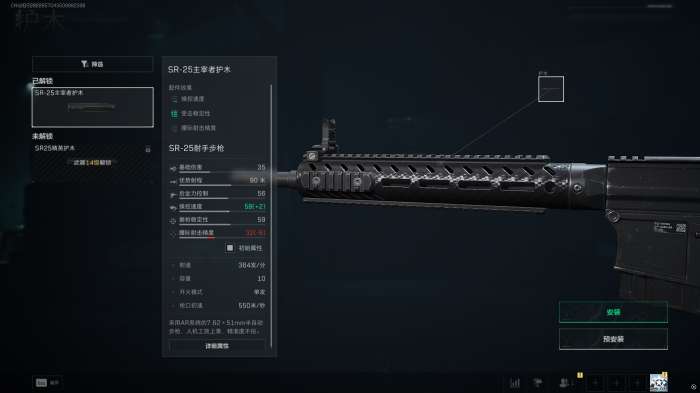 这里我觉得如果没有深入的研究分析,那么确实会在护木这个位置产生“选择困难症”。因为SR-25在护木这个位置上的另一个选项为“精英护木”,效果为:操控速度+2、据枪稳定性+2。在之前的版本当中,只有这个选项,那自不必说。