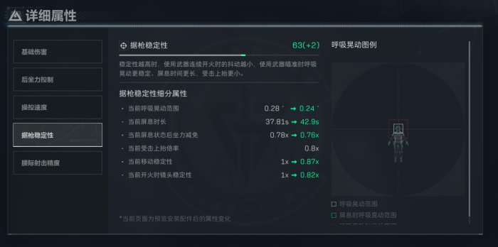 而其他的配件虽然也能提供+2据枪稳定性,但我们可以清晰的看到他们都不会改变“当前受击上台倍率”这个参数。