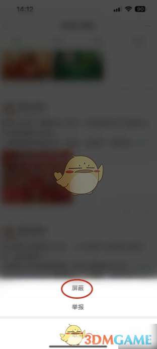 2、显示菜单点击【屏蔽】选项;